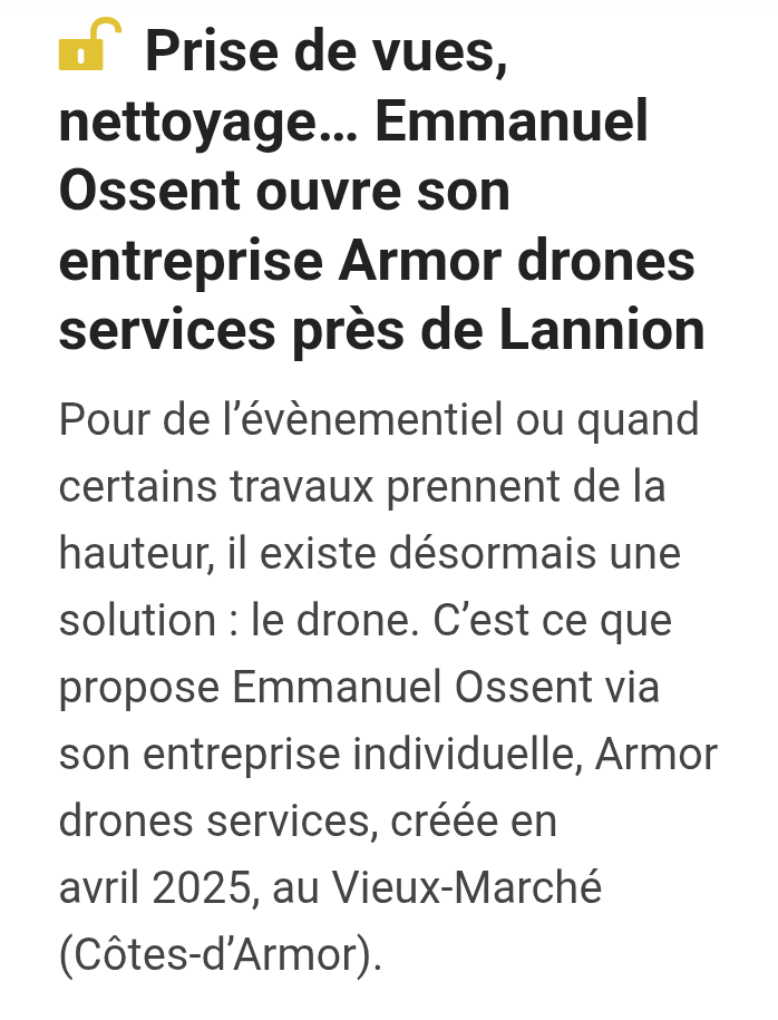 Découvrez l'étendue de notre expertise à travers nos réalisations. Chez Armor Drones Services, nous mettons à votre disposition un travail précis, soigné et discret à un prix compétitif. Admirez la qualité de nos services et imaginez ce que nous pouvons accomplir pour vous.